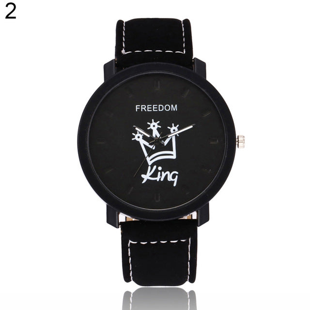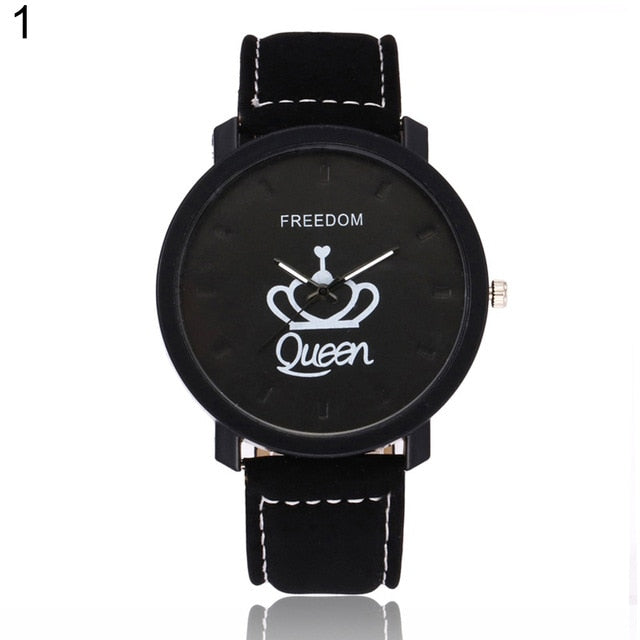 Couple Watch Queen King Crown Fuax Leather Quartz Analog Wrist Watches Chronograph 2018women men