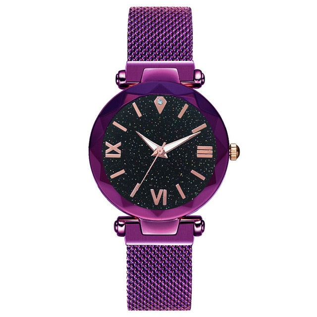 Luxury Women Watches Fashion Elegant Magnet Buckle Vibrato Purple Ladies Wristwatch 2019 New Starry Sky Roman Numeral Gift Clock